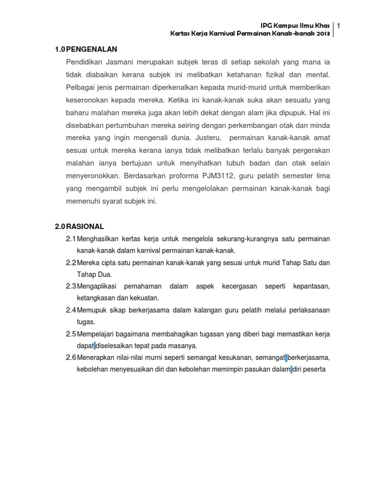 Kertas Kerja Karnival Permainan Kanak Kanak Pdf